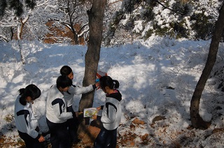 在雪后的初晴之日创新中心师生一行来到西山国家森林公园进行定向越野。此次分为高级路线和中级路线两个不同的难度,学生根据中级的实际情况自愿选择。