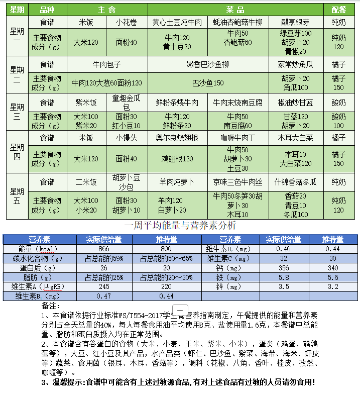 初高中食谱
