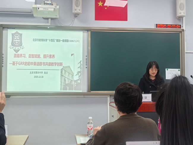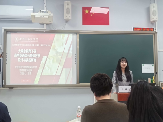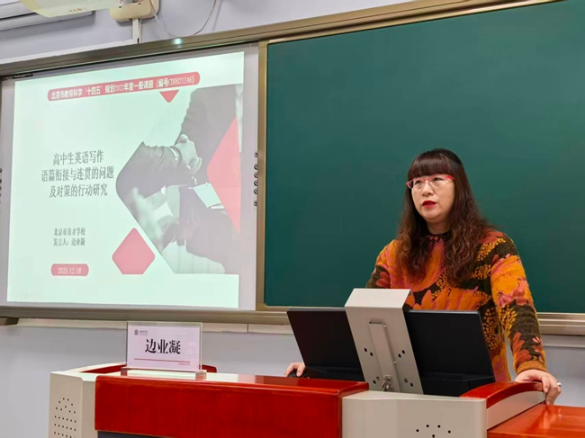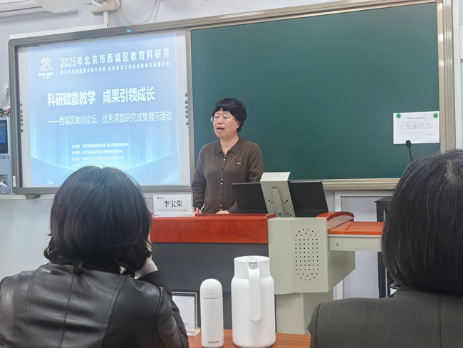 2025年12月18日上午,北京市西城区教育科研月“西城区教师论坛”在西城区教育科学研究院四层会议室顺利召开。为推动优秀课题成果从“结题”走向“深化研究”,西城区教科院科研管理中心聚焦近两年结题鉴定为“优秀”“良好”的北京市教育科学规划课题,遴选出兼具实践价值与深化潜力的成果,集中进行汇报展示。本论坛聚焦“学科素养落地”,北京市育才学校高中英语教研组长、正高级教师边业凝老师与来自北京师范大学附属实验中学的李和老师、陈林林老师,北京市第四中学的高洁老师一起进行了课题优秀成果展示。