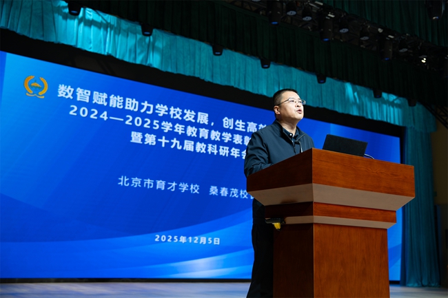 2025年12月5日,2024—2025学年北京育才学校教育教学表彰奖励大会暨第十九届教科研年会在金色时光礼堂举行。本次大会由正高级教师、学校副校长樊颖主持,学校全体干部及教师参会,共同见证先进表彰、共探教育发展新路径。