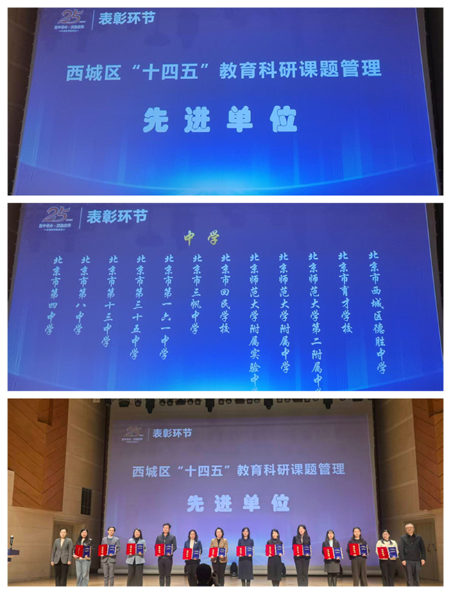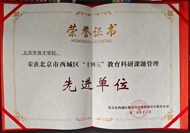 在此次盛会上,西城教育科学院何暄院长宣读了西城区“十四五”课题管理先进单位表彰决定,北京市育才学校与北京市第四中学、北京市第十三中学、北京师范大学附属实验中学等12所中学、17所小学、3所幼儿园、3所特教职教共计35家单位获得西城区教育科学规划领导小组的表彰。回顾西城区“十四五”教育科研的研究历程,这些课题管理先进单位以规范严谨的课题管理夯实科研根基,以求真务实的研究实践破解育人痛点,为区域教育科研水平提升注入了强劲的动能。