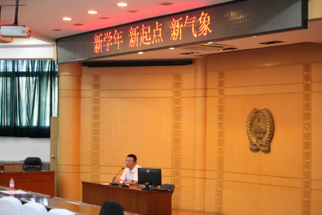 8月31日上午初中部全体教师在阶梯教室团聚一堂,共同学习新学期中高考改革变化的方向和学部工作指导思路。