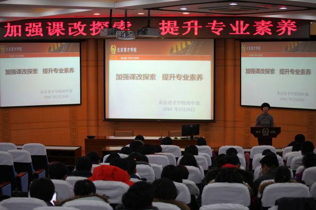2月20日下午阶梯教室,初中部召开全体教师会,解读课改精神,分享课改经验,明晰新学期工作目标工作任务。