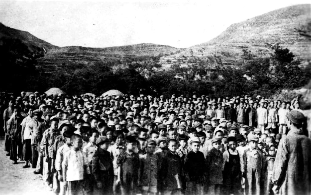 1937年,中国共产党人在延安高举抗日救国大旗,大批干部奔赴抗日战场。为解决革命干部子女和烈士遗孤的养教问题,中华苏维埃共和国中央临时政府西北办事处教育部长徐特立同志发出倡议:为了“抗日必胜,建国必成”,必须保育儿童。经中央批准,决定在以徐特立同志为校长的延安鲁迅师范学校开办干部子弟小学班,收留有特殊困难的干部子女和烈士遗孤。经中央组织部推荐第一批有17人被批准入学。3月21日“鲁师干小班”正式开学。这是我党创办的供给制、寄宿制、养教并重的普教学校的开端。