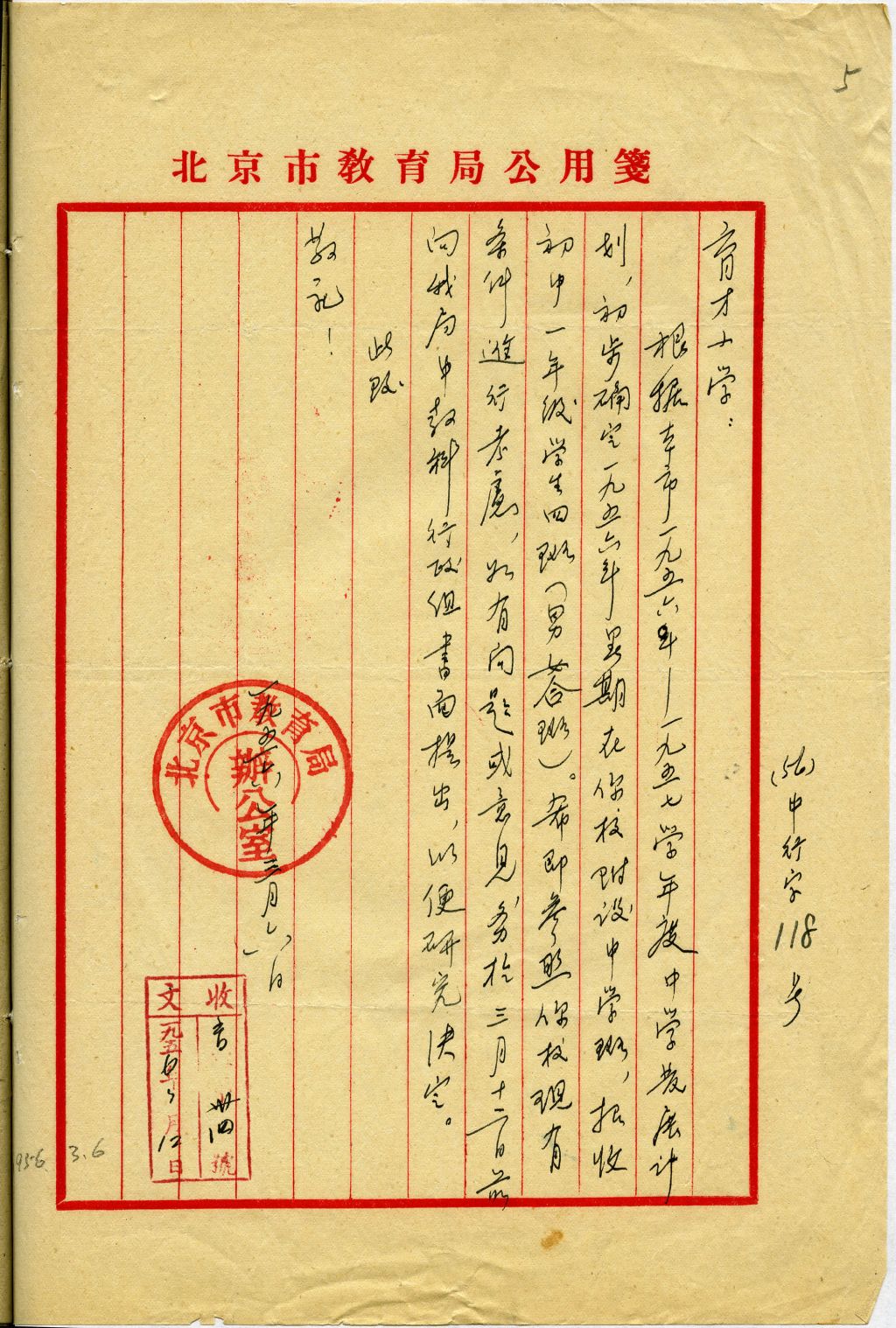 北京育才小学归属北京市领导,1956年增设初中班,改校名为北京育才学校,沿用至今。