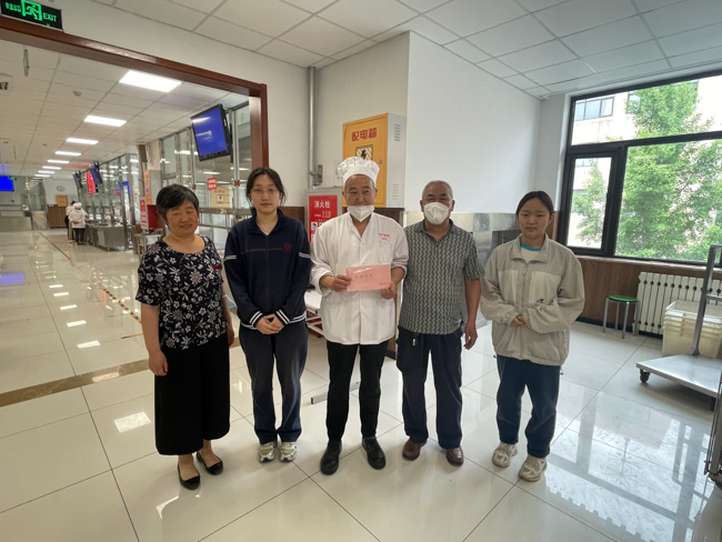 2023年5月17日,北京市育才学校国际部高三年级班主任闫春青等老师带领本届高三年级学生代表董妡持(英国)和元瑞涓(韩国)在学校食堂国际部专区,代表国际部全体毕业生向食堂匡师傅和冯师傅及全体食堂师傅鞠躬致谢并赠送感恩卡片。
