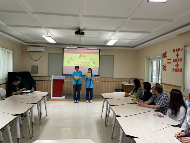 又是一年毕业季,在初夏的北京,在美丽的育才校园,又一批留学生迎来了高中毕业。5月18日上午,以“成长 感谢 远航”为主题的2023届国际部高三毕业仪式在国际部活动室举行。北京市育才学校校长助理国际部主任李迅、全体高三任课教师及高一、高二国际班的同学们参加了活动。