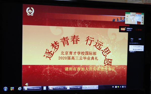 初夏的北京蓝天白云,六月的育才生机勃勃,2020年6月10日下午两点,别开生面的国际部2020届“逐梦青春 行远思恩”云毕业典礼在国际部活动室直播举行,校领导、全体国际部师生及家长监护人,满怀收获的喜悦和奔向未来的豪情欢聚在互联网。