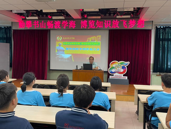 2023年9月5日下午,北京市育才学校国际部在学校多功能厅召开了主题为“勤攀书山畅度学海 博览知识放飞梦想”的新学期学生大会。北京市育才学校校长助理国际部主任李迅主持讲话,国际部全体国际班学生和高中插班国际生参会。
