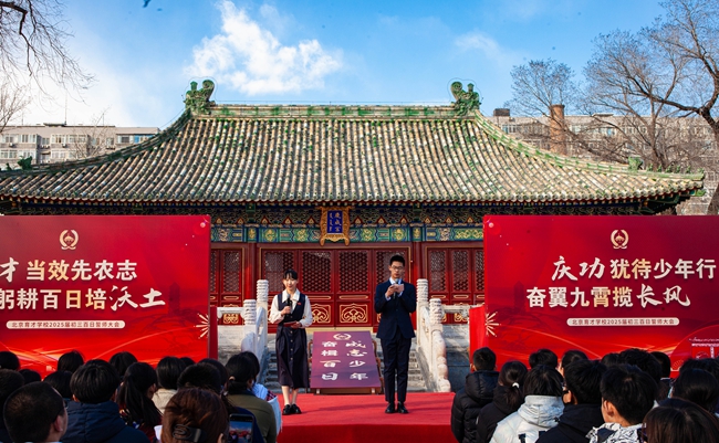 春潮涌动,誓言铿锵。2025年3月17日下午,北京市育才学校2025届全体初三师生及家长代表齐聚一堂,于先农坛庆成宫举行以“育才当效先农志,躬耕百日培沃土;庆功犹待少年行,奋翼九霄揽长风”为主题的中考百日誓师大会。这场充满激情与希冀的盛会,不仅是对过往奋斗的礼赞,更是对百日冲刺的庄严宣告。