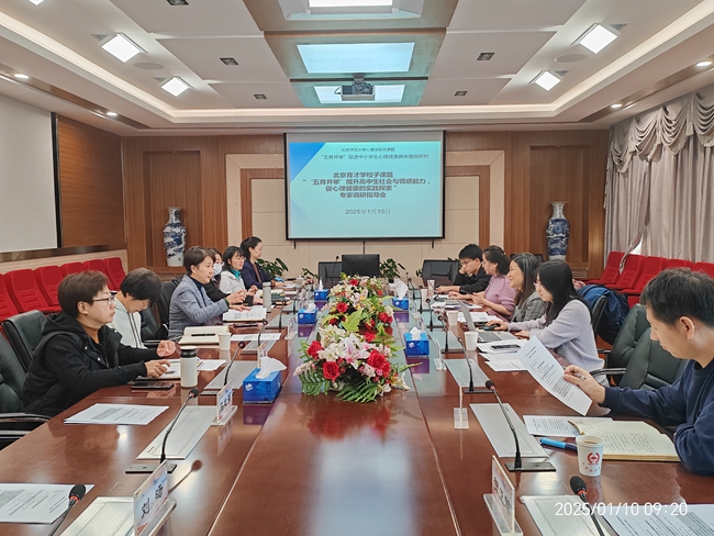 2025年1月10日上午九点半,在北京市育才学校本部行政楼一层会议室,《“五育并举”提升高中生社会与情感能力,促心理健康的实践探索》课题组热烈欢迎来自北京师范大学心理学部的知名专家林丹华教授以及徐青林博士、王雅琼博士后等三位专家的下校调研。