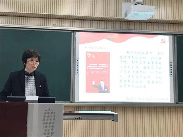 11月6日下午4:30,第二党支部全体党员聚集在初中部录课室,认真聆听了支部书记修伟荣同志讲的“不忘初心、牢记使命”主题党课——《文化自信的知与行》。
