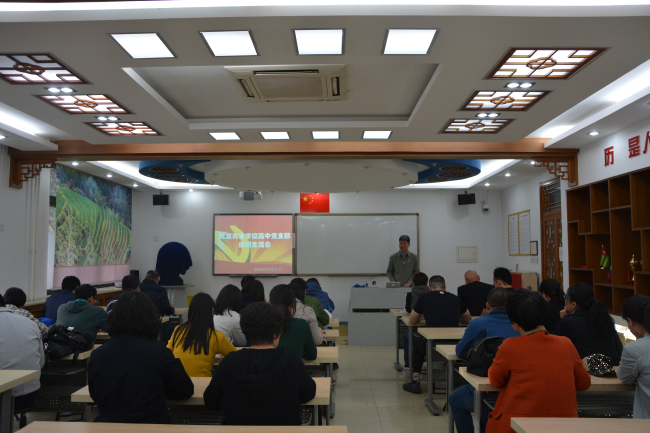 018年4月11日在史地教室,高中党支部召开组织生活会,支部全体党员参加会议。学校党委齐建军书记出席会议。会议公布新一届高中党支部支委名单和分工。
