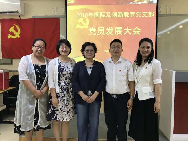 2018年6月27日,国际及创新教育党支部在国际部活动室召开党员发展会,会议由支部组委苏燕助理主持,全体党员及积极分子参加了此次会议,党委书记齐建军全程莅临指导。
