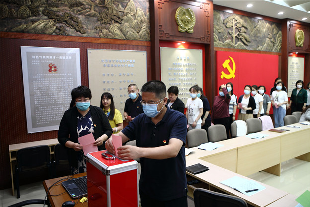 今年,在举国上下喜迎中国共产党建党一百周年的日子里,北京育才学校党委第一党支部于5月19日下午在我校图书馆二楼召开了闵丽莹同志的发展大会。