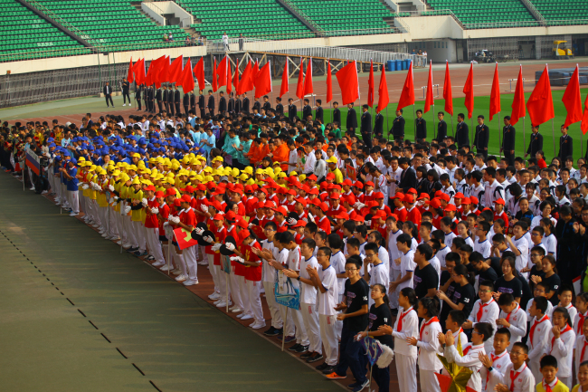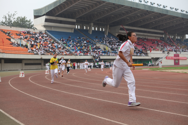 2017年9月30日,北京育才学校(中学部)田径运动运动会在先农坛体育场拉开了帷幕。随着激昂的口号,精彩的班级入场式展示,全校两个校区、近2000名师生精神抖擞,神采飞扬,排着整齐的队伍依次入场,充分展现了育才师生的蓬勃朝气和青春活力。开幕式上桑春茂校长致辞,齐建军书记宣布大会开幕并预祝本次大会圆满成功。比赛过程中,运动员们顽强拼搏,努力争胜,比出了风格,为班级争夺了荣誉。啦啦队助威的呐喊声,运动员得胜的欢呼声,不断地在场地上空响起。校运会成为了同学们尽情展示才华、增进友谊、磨练意志的大舞台。