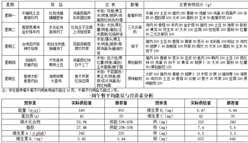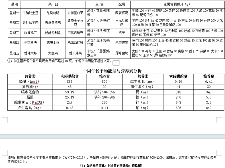 本周学生食谱(2025.10.27)