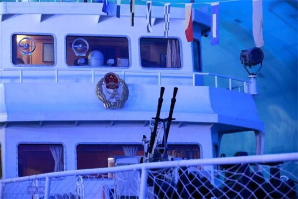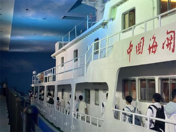 在讲解员的引导下,同学们首先步入“海关902”艇专题展厅,这里陈列着“海关902”艇的整船实物。该艇服役三十载,累计航程逾25万海里,更因邓小平同志1992年南方谈话期间乘坐而具有特殊历史意义,是一艘名副其实的海关功勋舰艇。中华人民共和国海关关徽庄严醒目,与国徽一同昭示着国家主权的神圣不可侵犯。师生们有序登艇参观,沉浸式体验带来视觉与心灵的双重震撼。