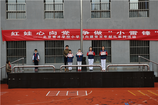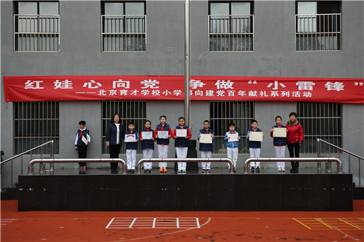 北京育才学校小学部全体教职员工也立志将带领同学们听党话,跟党走,做红娃传承红色基因,争做新时代的“小雷锋”。