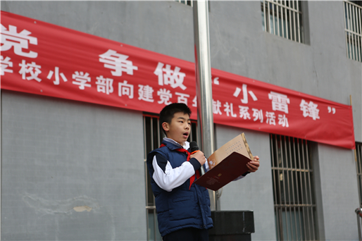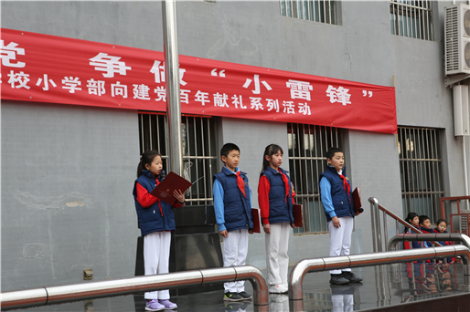 习近平总书记在全国第八次代表大会上要求队员们要在少先队这所大学中立志向、修品行、练本领。为响应总书记的号召,2021年3月1日上午,在全国上下喜迎建党百年之际,在全国第58个雷锋日到来之时,北京育才学校小学部举行了 “红娃心向党 争做‘小雷锋’”主题升旗仪式。会上小学部主管朱绪兵校长对同学们寄予了殷切希望,希望同学们要做一个有责任感有理想的人,从现在开始,从小事做起,从身边做起,从我做起,脚踏实地用行动去实现自己制定的目标。