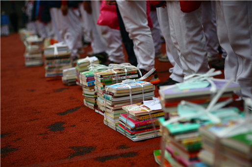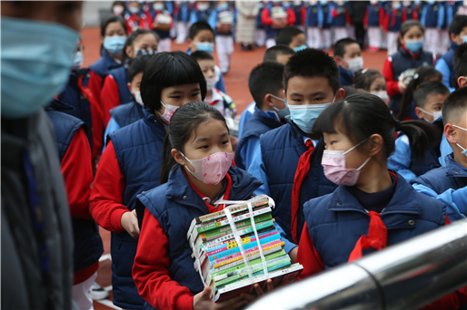 队员们以红领巾志愿服务行动向雷锋叔叔学习,上个学期,荣获五星级志愿者称号的共有966名队员,大会上举行了颁奖仪式,程驰主任为五星级志愿者代表颁奖,丁纳主任、海国红主任为上个学期荣获市区级荣誉的同学进行颁奖。在雷锋日到来之际,为了将红色志愿活动进行深入开展,四8中队的代表向全体队员发出倡议“续写雷锋日记,为我们心爱的图书找个新主人”,再次为自己流动的图书馆、延安保小、打工子弟进行捐书,共捐赠3000余册。最后张立红主任带领全体队员在国旗下志愿宣誓,开启了新学期的志愿服务。