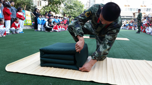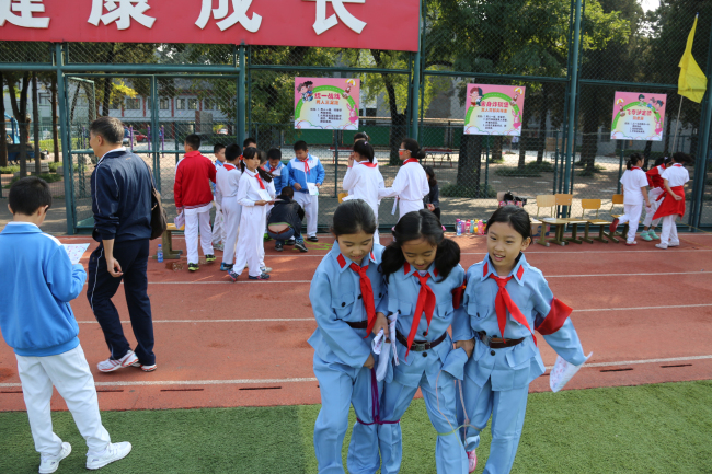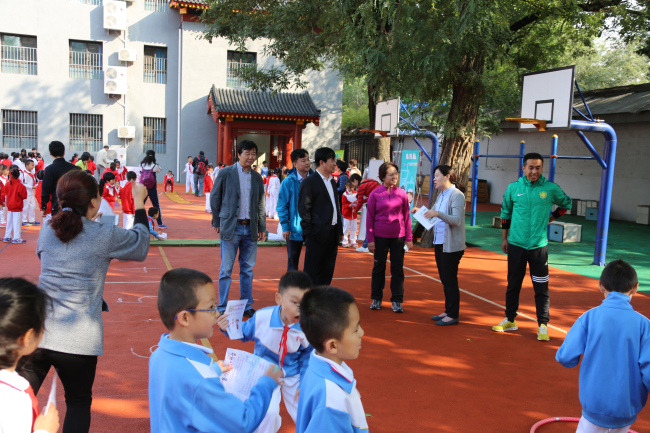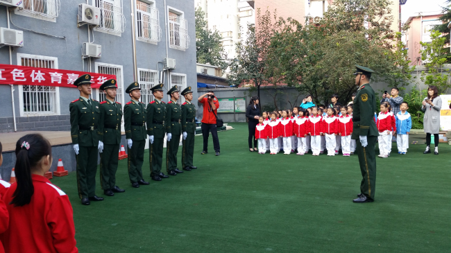 来自武警北京市总队的一年级学生家长和他的战友们为太平街校区一年级新生带来了精彩的队列展示、格斗表演和内务展示,为红色体育嘉年华拉开了“红色”的序幕。本次嘉年华,在所有领导、老师与家长志愿者们的通力创意下,操场上呈现了近150个生动有趣的红色游戏:火线鸡毛信、送军粮、炸碉堡、匍匐前进、打靶归来、飞夺泸定桥……孩子们以战斗小英雄的身份参与了一个个趣味十足的红色游戏,仿佛置身于那段红色历史中。孩子们踏着英雄的足迹,缅怀先烈,追忆艰苦岁月,感怀今日的幸福生活。同学们在这次红色嘉年华活动中收获了自信,懂得了合作,体会了老一辈革命家大无畏的精神,身体得到了锻炼,心灵得到了升华。此次活动不仅赢得了同学们的喜爱,也得到了家长们的认可。我校责任督学徐荣庆也全程参与了此次嘉年华活动。