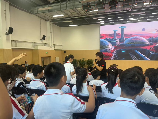 在“坐什么去火星?”的话题分享中,专家对比了火箭、卫星、飞机、汽车甚至步行等不同“交通工具”的速度,直观展现航天科技的速度优势,同学们不时发出惊叹,进一步激发了对航天科技的兴趣。