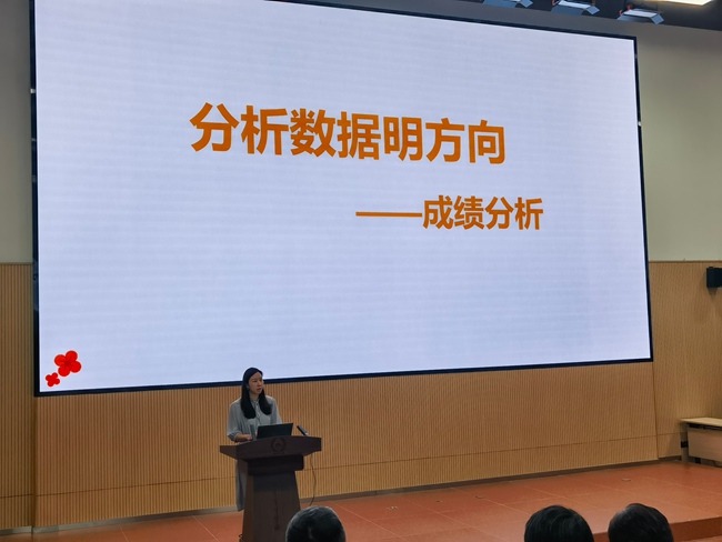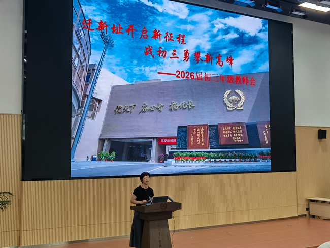 随后,初三年级组长李晶老师立足各班学情,细致梳理班级差异,并提出具体管理建议。她以“如数家珍”的细致和“成己成人”的教育情怀,阐述了“修身担责,成己成人”的新学期教育理念,号召全体教师携手助力学生全面成长,实现师生共同进步。