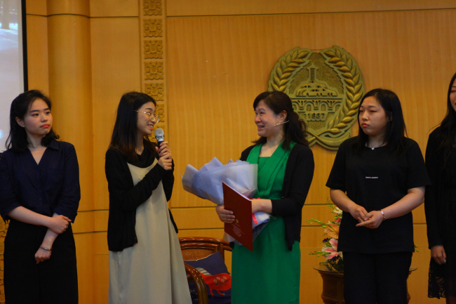 本次表彰会的交流展示环节,特别借鉴了央视《朗读者》的节目形式,邀请耿笑一、张莹、何弋、王红玲四个不同年龄段的教师与大家分享他们在育才学校学习、工作、成长的感受。四位老师追忆了自己育才的青春往事,畅谈了自己在工作过程中的成长和感悟,为大家朗读了他们精心挑选的文章,并分享了他们的心得体会。