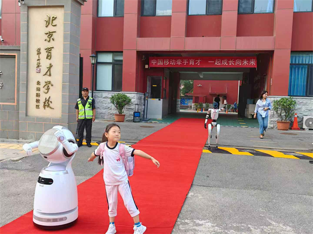 九月四日,北京市中小学开学返校第一天,中国移动北京公司(北京移动)带着来自中国移动协同创新基地的“硅基员工”机器人,为育才学校北纬路校区的师生们送上了一堂别开生面的“人工智能公益课”。