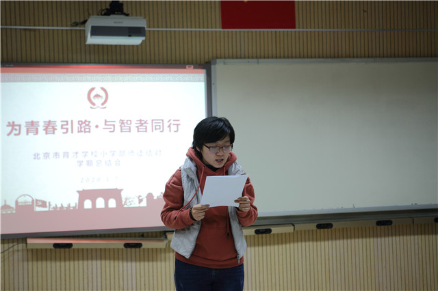 此次总结会的主题是“为青春引路,与智者同行”,共分为三大部分。首先,小学部的高沛、孙奕、种琳、谷佳鑫和苗澍5位青年教师分别代表语、数、英、体四大学科,以及青年班主任进行了总结发言。老师们分别谈到了自己本学期的收获以及对师傅倾心帮助的感恩之情;牛晓东老师作为师傅代表进行了发言,她不仅阐述了对“传、帮、带”的理解和思考,而且对青年教师提出了更高的期望。随后,在座的师徒们在轻松愉悦的氛围中畅所欲言,进行了心灵的对接。有的老师谈到了“育才精神”的传承,有的老师谈到了师徒之间的情谊,还有的老师对于自己今后的事业发展有了更加明确的目标……最后,小学部主管朱绪兵校长进行了总结发言,他对师傅的帮扶提出了“规范要求、激励为主、指导实践”的要求;对于徒弟,朱校长要求她们与师傅同向同行,并制定自己的三年成长规划。“多与高人交往,勤与能人做事,乐与众人分享”是朱校长对青年教师的期望。