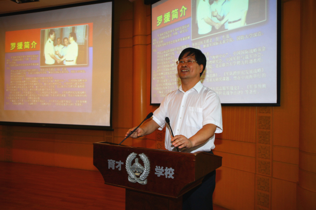 2016年9月7日,十一届全国政协委员、中国战略文化促进会常务副会长兼秘书长,军事科学院世界军事研究部原副部长,博士生导师,我国著名的国际战略学和国家安全学专家罗援少将来到北京育才学校,他结合自己的成长经历,以及周恩来等老一辈无产阶级革命家的感人事迹,以《人生的选择——个人理想与国家》为题,为学生讲授了一堂鲜活生动的爱国主义教育课。