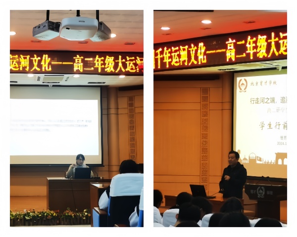 出行之前,11月12日,在学校阶梯教室召开了高二年级学生行前动员会。历史组刘巍老师为同学们介绍了与大运河相关的历史名人,用人物串联起大运河开凿及发展历史,让同学们对大运河尤其是北京段有了初步的了解。之后,德育处贺卫军主任介绍了本次研学的行程和内容,强调了研学的纪律要求,希望同学们能在研学中学有所得。
