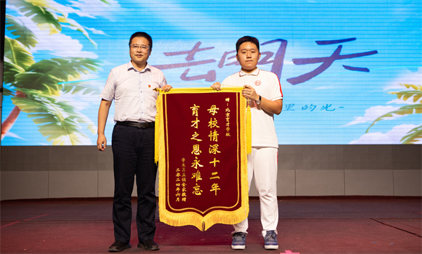诗句道不尽学生离别的不舍,道不尽学生对母校深深的留恋与感谢!高三(6)班吴孟儒同学的家长向学校赠送了一面锦旗,感谢学校、老师对孩子的悉心培育,这也是家长对于学校和教师最好的认可。