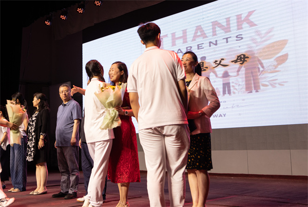 热烈的掌声将各班家长代表请上舞台,同学们为含辛茹苦的家长献上鲜花,以表达自己的感激之情。高三(1)班吴季豪同学的母亲作为家长代表发言,分享了孩子们到毕业季,家长们心底的喜悦与感动。她欣喜于孩子们的成长,感动于老师们的长久陪伴和辛勤付出,并勉励同学们给当下以拥抱,给未来以期待,书写人生新的篇章!