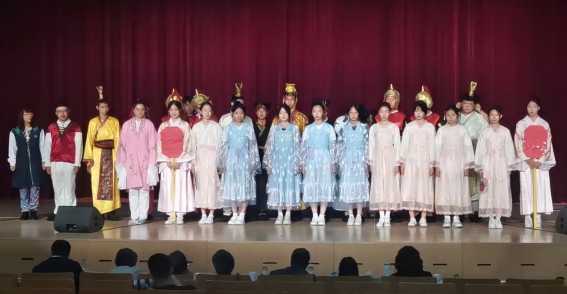 2024年5月25日,育才学校高中英语组教研组长边业凝老师和全体高一英语备课组老师们一起,带领25名高一学生,参加了2024年第十五届“希望中国”双语文化艺术节活动,活动组委会在包含中英文经典剧、原创剧、课本剧、音乐剧等北京市各中小学近两百余部作品中,经过评审,我校英文经典剧《荆轲刺秦王》成功入围现场决选。自2024年3月份启动以来,在学校各个部门的大力配合下,高一英语备课组老师们带领学生策划脚本,利用学生课余时间,带领学生们钻研剧本,打磨表演细节,经历了一系列的刻苦排练和彩排,克服了难以想象的困难,用有限的服装道具、化妆,凭借学生演员现场演绎发挥,把精彩的英文剧《荆轲刺秦王》展现在广大评委眼前,呈现了中华传统文化表现的新形式。同时学生们不但在展演环节表现出色,5名同学分别表演了武术、横笛、京剧、空竹、诗朗诵,在才艺展示阶段展现了学校“扬优长”的成果,为学校争光添彩。赛后领队边业凝老师和两名参演学生接受了主办方的专访,就对于本英文剧中戏剧人物的看法,对于如何进行英语学习和英语戏剧教学等方面进行了采访,展现了育才学校的教育教学新理念。最终,我校高一学生表演的英文剧“荆轲刺秦王”获得银奖,获得了参加在7月下旬全国年度展演的资格。