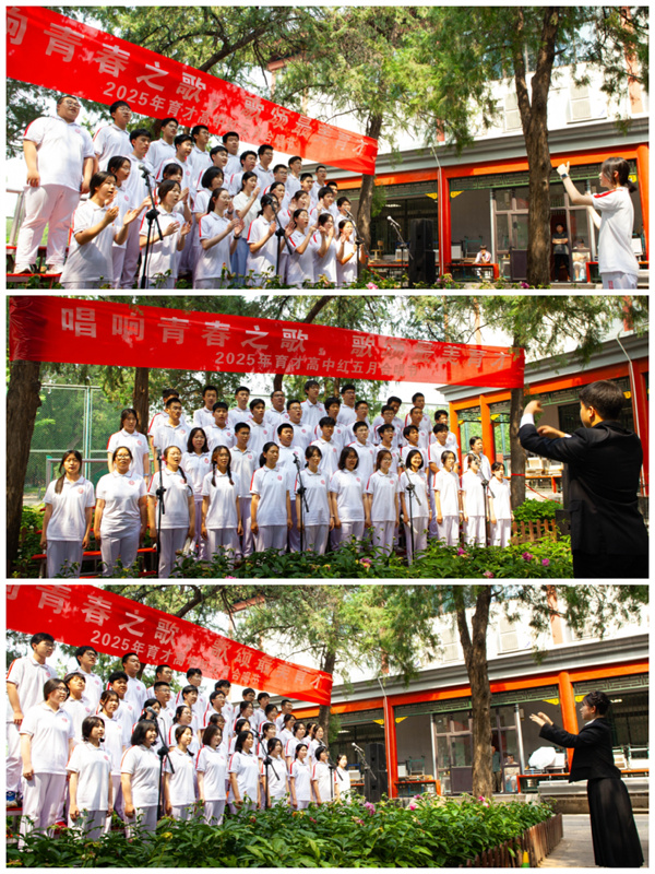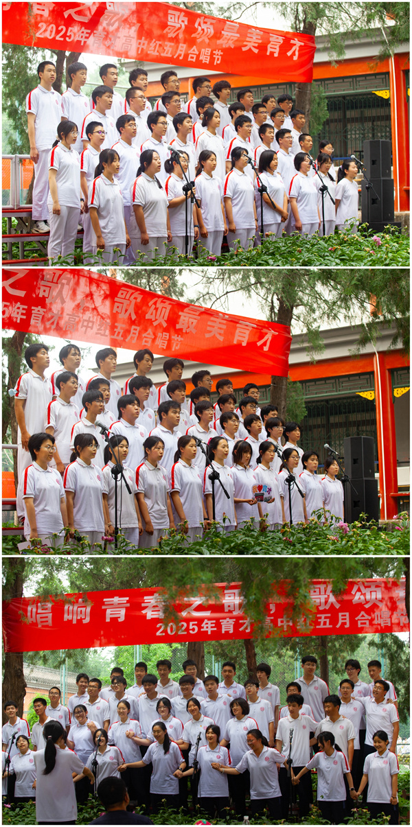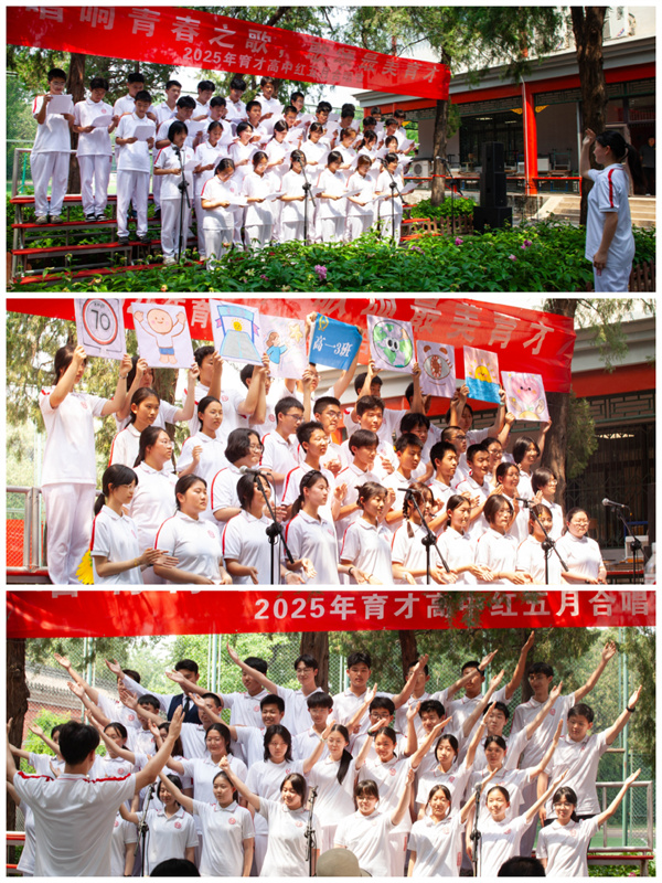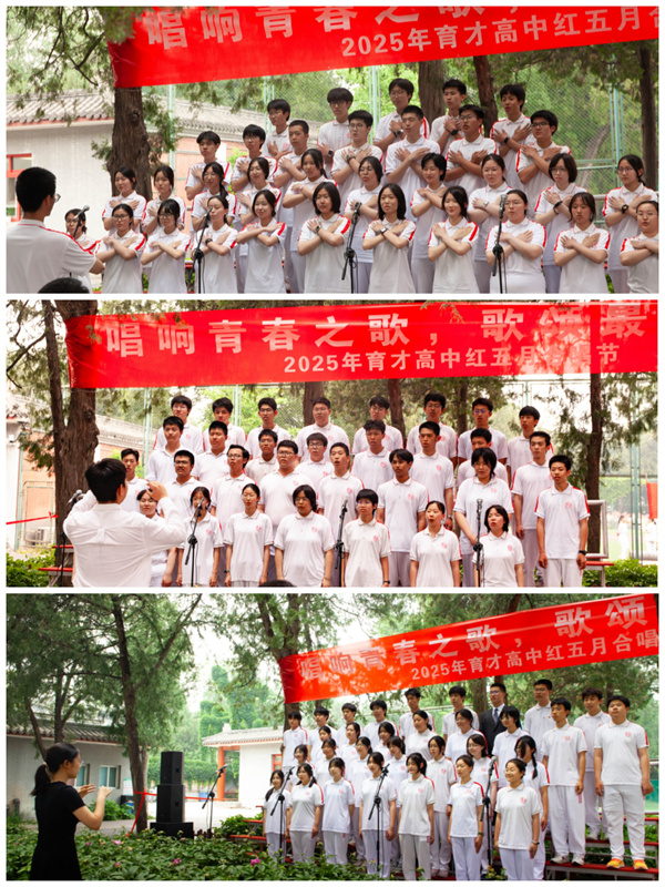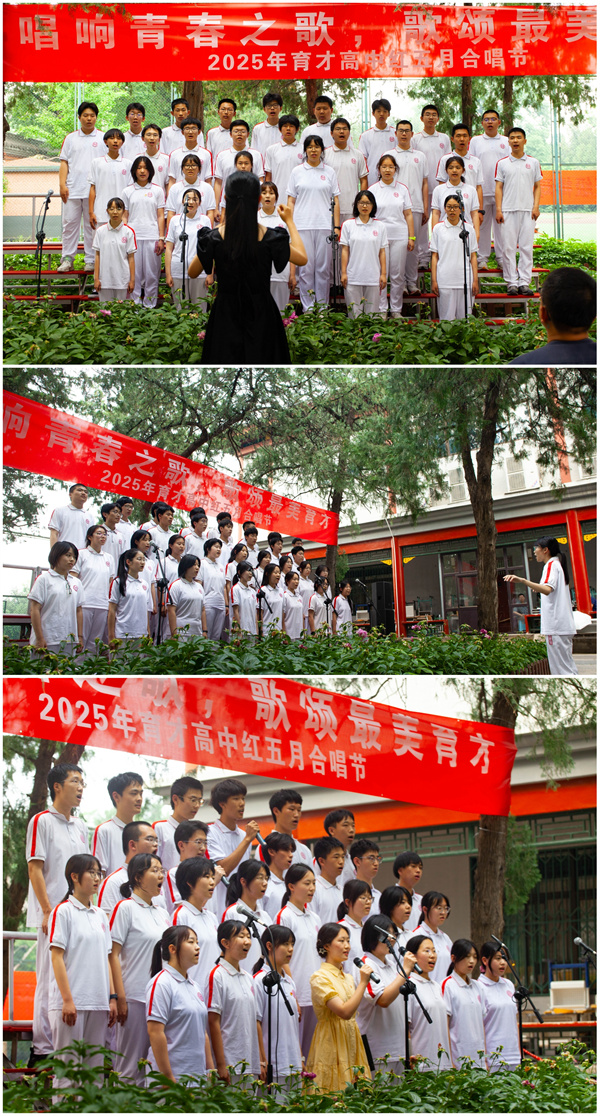 2025年5月20日,北京育才学校高中部在苍松翠柏之间,芍药花畔,隆重举行了主题为“唱响青春之歌,歌颂最美育才”的“红五月”合唱节。高一、高二年级全体学生以班级为单位参与演出,用歌声传递青春激情,展现育才学子的精神风貌。