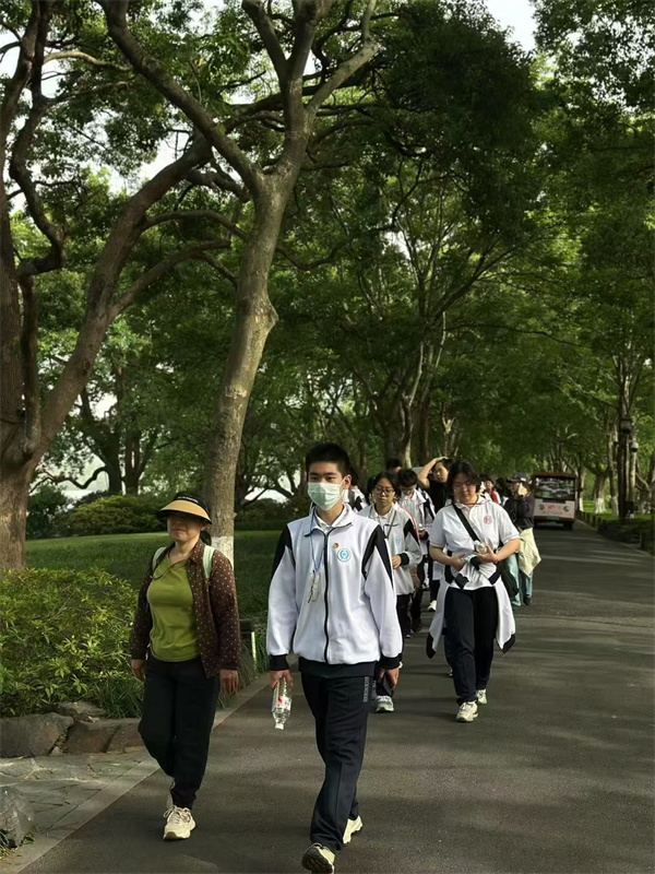 5月6日,研学第一天。同学们首先来到杭州最富盛名的景点——西湖。漫步西湖,同学们穿过杨公堤,漫步苏堤,在前行的脚步中,感受“淡妆浓抹总相宜”的江南风情。在西湖文化讲解中,大家了解到白居易、苏轼等文人墨客与西湖的深厚渊源,体会到自然景观与人文历史的交融。