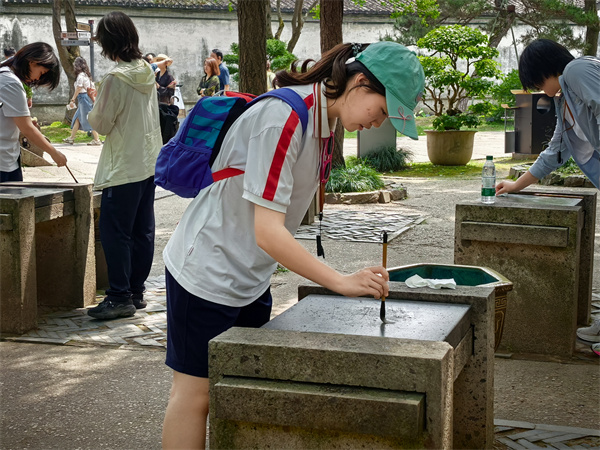 在兰亭,同学们重温王羲之的《兰亭集序》,感受“崇山峻岭,茂林修竹”,“清流急湍,映带左右”,还换上古装体验曲水流觞的雅趣;游览王右军祠、鹅池、中国书法博物馆,对书法艺术有了更深刻的理解。“书法不仅是艺术,更是一种修身养性的方式”,研学导师的这句话,深得同学们的认同。