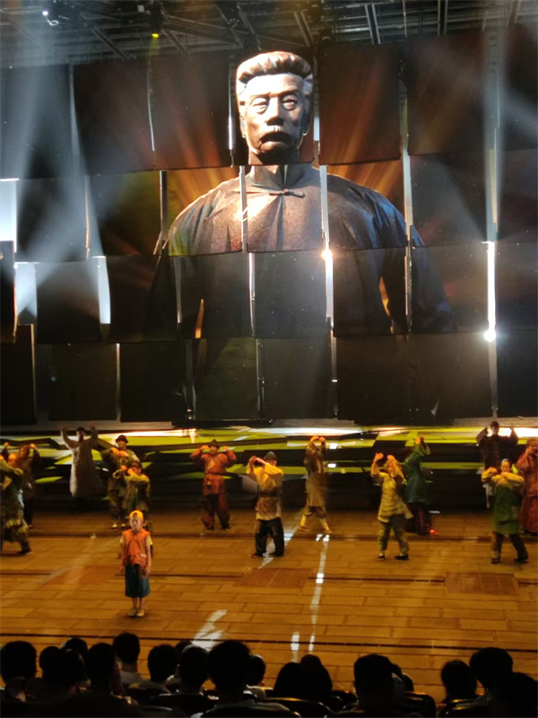 在鲁镇景区,同学们观看了绍兴首创影画剧《鲁镇社戏》,这部剧全景展示了100年前鲁镇水乡建筑、设戏台、乌篷船等江南水乡特有风貌,深度还原了“大先生”的精神家园。