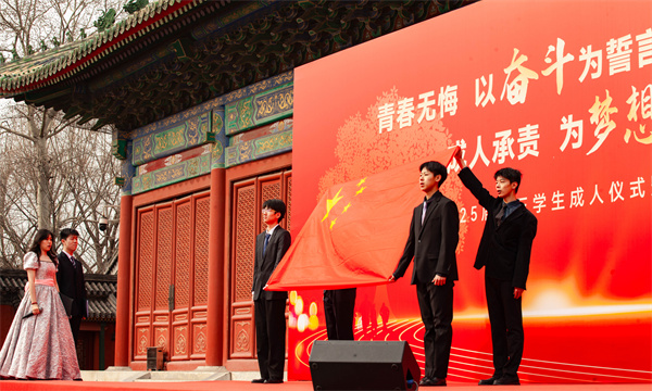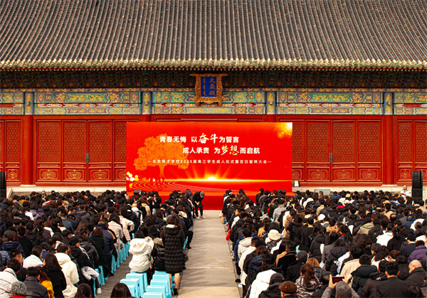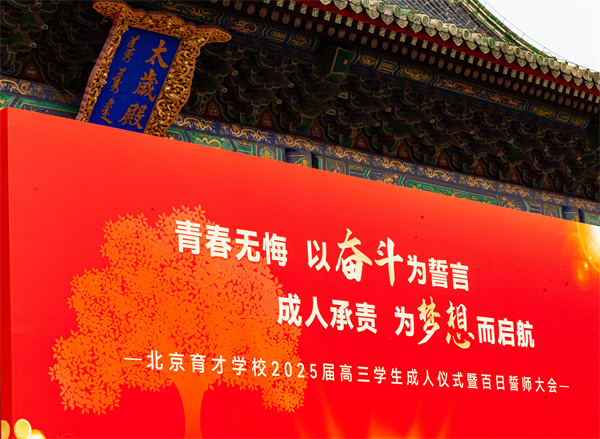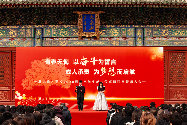 2025年3月3日下午,“青春无悔,以奋斗为誓言;成人承责,为梦想而启航”——北京育才学校2025届高三学生成人仪式暨百日誓师大会在先农坛古代建筑博物馆太岁殿前隆重举行。在这座饱经历史沧桑、承载文化底蕴的古建筑里,高三全体家长、老师,以及各位学校领导,共同见证了高三学子人生中这一重要时刻。