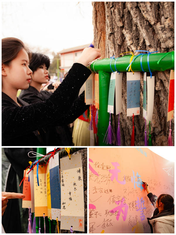 同学们将手中的心愿卡悬挂在育才标志性的大树上,并在心愿墙上写下成人感言。彩色的便签贴满墙面,承载着青春的梦想与期待,也象征着同学们正式开启人生的新篇章。