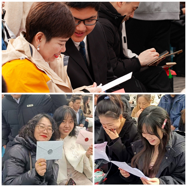 家长与孩子们互读家书的环节将活动氛围推向高潮。家长与同学们交换信件,静静阅读。家书中,有父母多年来的养育之情、殷切期望,也有同学们藏在心底的感恩与决心,许多人眼眶泛红,亲情在这一刻温暖流淌。