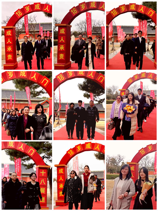 活动尾声,家长和同学们携手走过成人门,长长的红毯,满载着学校、家庭与青年人的希望和祝福;高高的成人门,记录着此时此刻家长与孩子们激荡的心情。