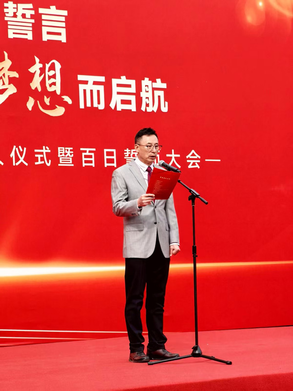 育才高中部家长教师协会会长孙志杰先生作为家长代表向孩子们深情寄语,他满含深情地回顾孩子成长的点滴,表达了对学校和老师辛勤付出的由衷感激。同时,他也鼓励孩子们勇敢追梦,勇敢地面对高考这次人生重要的挑战。无论遇到什么困难,父母永远是孩子们最坚实的后盾。