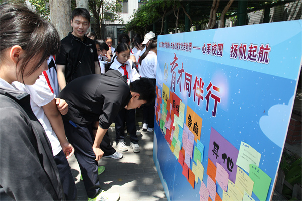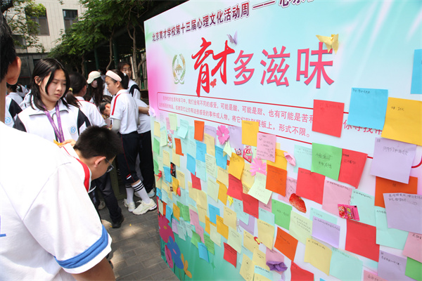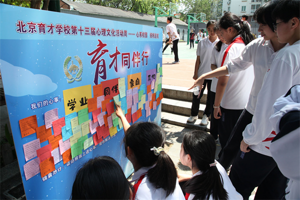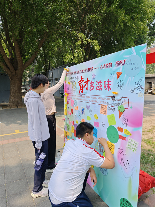 活动首日(5月19日周一),两校区学生代表在升旗仪式上发表国旗下讲话,回顾在先农坛校区的学习时光,描绘对未来校园生活的憧憬,正式拉开心理活动周序幕。当日中午,龙泉校区 “育才同伴行” 活动中,同学们写下学习生活中的困惑,也有同学针对留言附上暖心建议,同学们体验到了同辈间的温暖互动;三区 “育见先农坛” 活动里,学生们通过文字和绘画、作品等形式,共忆校园生活的美好瞬间,在师生共同的记忆叙事中传承了先农坛精神。