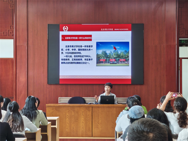 2025年5月13日下午,“中央专项彩票公益金教育助学项目励耕计划中西部地区中学心理健康教师培训”(第二期)56位参访教师走进北京市育才学校。本次活动由中国教育发展基金会主办、人教社承办,育才学校学生指导中心精心策划接待,呈现了一场理论实践结合的心理健康学校工作实践交流现场会。 下午2时,参访教师直接到达图书馆二层主会场。 寿延副校长代表学校致欢迎词,并作了《运用“横向联动∙纵向贯通”心育工作机制,为孩子营造健康成长的生态环境》的主题交流,对我校的心理健康工作系统进行了全面介绍,激发了与会人员对学校心理健康工作深入了解的期待。 周秀丽老师汇报了《北京市育才学校心理健康课程体系》,从“独立自主·共情参与”的课程总目标到六大单元目标和学段目标、学情调查、课程实施和课程评价、课程保障等全部内容。校本课程体系的构建,是学校心理健康课程全面推进的基础和保证。 在课堂教学交流环节,由四节研究课组成:分别是6年级刘晓晶老师的《学习马拉松》、7年级华思宇老师的《像游戏一样学习》、8年级李婷婷老师的《做多少度青年》和高一年级周秀丽老师的《学习的动力之旅》。根据课前调查和心理学理论的学习,4个学段的学习动力主题,分别聚焦于丰富学习动力认知、增强与学习之间的情感联结、敏锐体验不同角度的动力状态以及激发和感受内在学习动力四个课堂教学目标,巧妙的课程设计和活动实施,为参会老师带来对于同一主题课程的深度思考和实践引领。 课堂展示结束后,与会老师与我校学生指导中心团队展开研讨,围绕学校心理健康工作的开展、生涯发展实践活动等多个内容展开交流。 活动最后,全体人员在题词壁前合影留念,随后参观古代建筑博物馆,在感受历史文化底蕴的同时,为本次参访画上圆满句号。 本次活动中,育才学校用15年的心理健康教育创新实践成果搭建起与中西部地区心理教师交流互鉴的平台,交流也促进了我校心理健康教育工作的提升和整合,这种双向赋能的活动会更进一步促进学生心理健康工作的科学化和系统化。