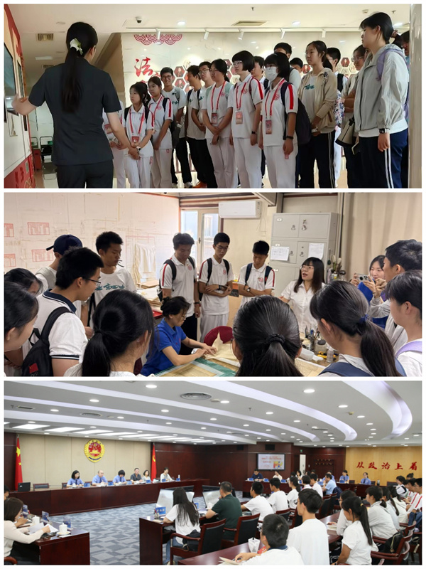 在西城区检察院,学生们跟随一线办案的检察官,体验他们的日常工作。面对学生们对于法律知识学习的渴望,检察官们筹划多种活动,如旁听庭审、案件录入、网点检索等,让学生边工作、边学习、边观摩、边体验。在京南廉洁文化馆,学生成为讲解员,在中华传统文化的情境中介绍廉洁为公、勤政为民的渊源与传承,。沉浸式的体验,让学生们学到更多的法律知识,也增强了心中的正义感和责任感。