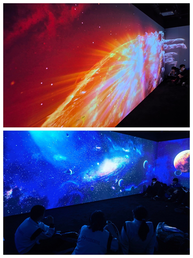 活动的高潮部分充分展现了北京市光科技馆的科技互动实力。在360度环形全景沉浸剧场,同学们被极具视觉冲击力的光影艺术所包围,体验了光与影带来的超越常规的感官革命。而在融合人工智能与机器人技术的特色课程体验区,同学们分组指挥搭载先进光学传感器的机器人展开了一场别开生面的足球对抗赛。这场智趣交锋,不仅直观演绎了光感知与AI决策的协同,更在激烈竞技中锤炼了团队的逻辑思维与协作能力。