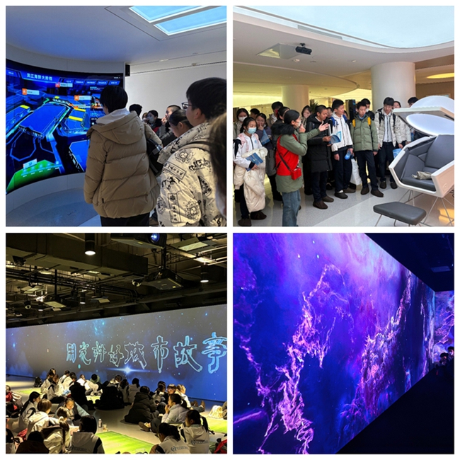 随后,探究的焦点转向当下与未来的空间维度。在“从地下光到未来城市”主题展区,同学们通过观看中轴线发展史影片,建立起对北京城市发展脉络的历史纵深感。通过丰富的实物展品与交互模型,亲身体验了OLED光源、双面电视、创意爆炸灯及纤薄如纸的1毫米曲面屏等尖端光显示技术。在此基础上,一系列前瞻性方案与场景演示,更让大家窥见了光技术在智慧城市的安防、交通、医疗、管理等领域的颠覆性应用前景。北京市光科技馆前沿的展陈内容,让同学们对“光塑造未来”的理念有了具象而震撼的认知,关于可持续发展与科技伦理的思考也在讨论中自然生发。